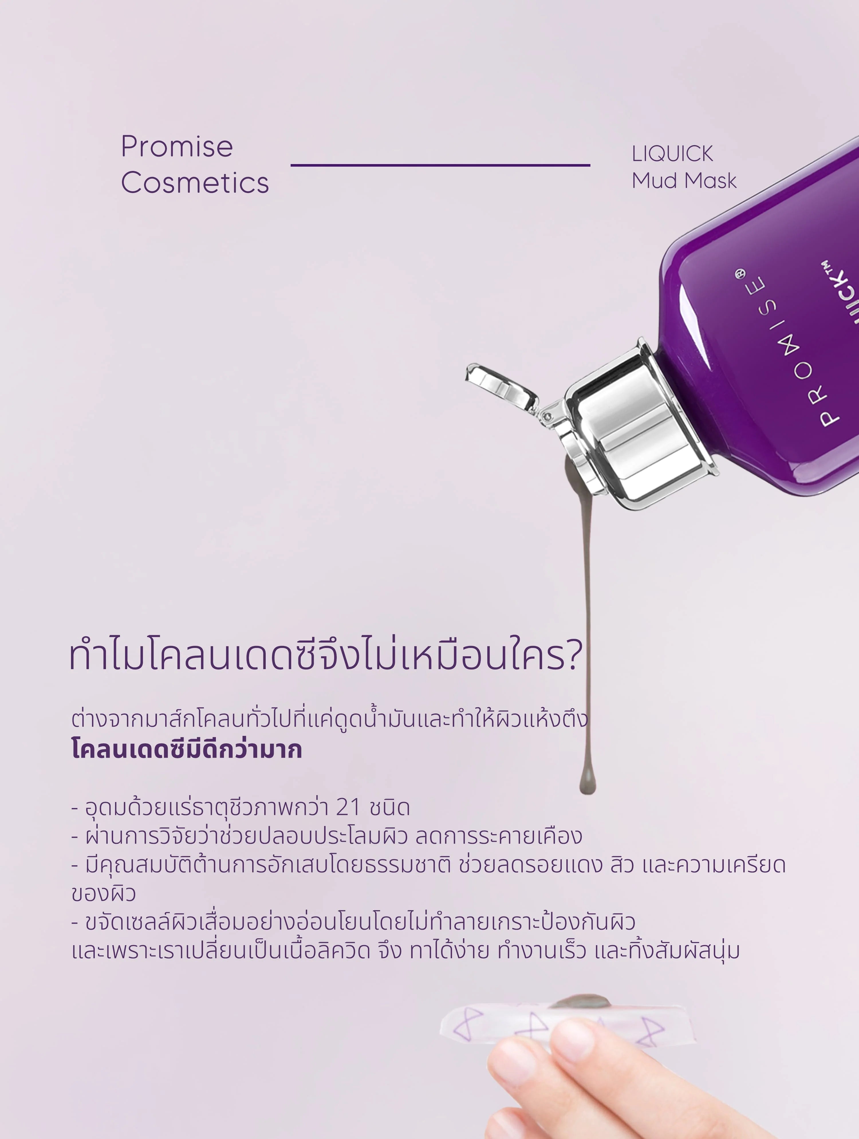 - เนื้อโคลนเหลวเหมือนเซรั่ม ออกฤทธิ์เร็วแต่อ่อนโยน และไม่เลอะเทอะ